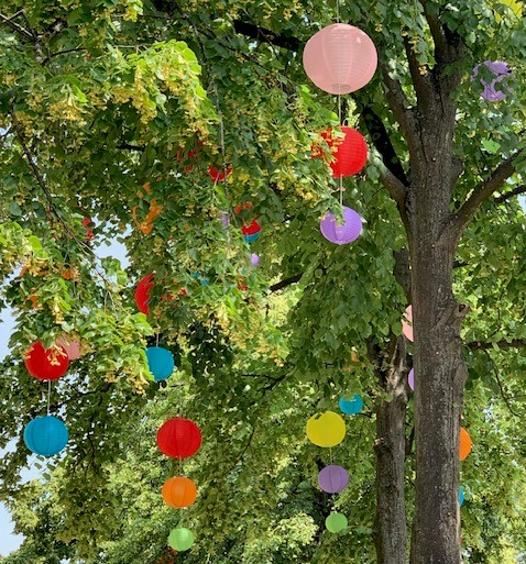 Bunt, fröhlich, auffällig und mitunter laut - so wird sich ab dem 1. Juli wieder der Sommergarten rund um die St. Petrus-Kirche präsentieren. Das diesjährige Thema lautet "Das Leben feiern". Das Leben ist ein Geschenk Gottes - mit all seinen Sonnen- und Schattenseiten. Das möchten wir ins Bewusstsein holen und Große und Kleine dazu einladen, den Alltag für einen Moment hinter sich zu lassen. Allerlei zum Anschauen, Nachdenken, Ausprobieren, Hören und Genießen gibt es dort zu finden. Die bunten Lampions in den Bäumen zur Straße "An der Propstei" hängen bereits und sind erst der Anfang. Das komplette Programm mit Eröffnung, Lesungen und Konzerten gibt's hier.