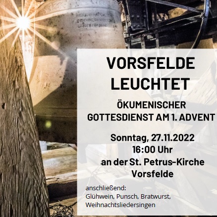 Nach dem Gottesdienst gibt es Glühwein, Punsch, Bratwurst und Weihnachtsliedersingen. Kinder können sich am Lagerfeuer mit kleinen Bratpfannen Pfannkuchen backen. Der Erlös der Veranstaltung kommt dem ökumenischen Projekt „Neue Glocken für Vorsfelde“ zugute.