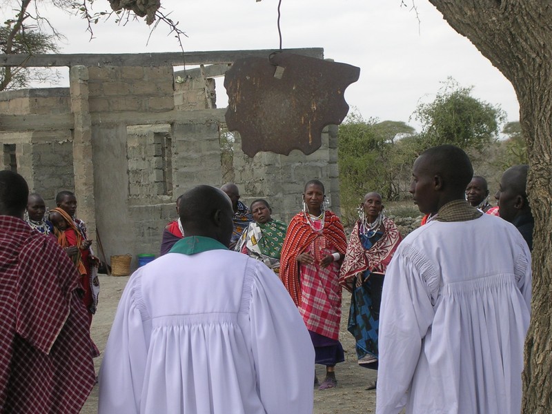 Eine alte, zerbrochene Pflugschar hängt im Baum. So läuten viele Gemeinden in Ostafrika zum Gottesdienst.
