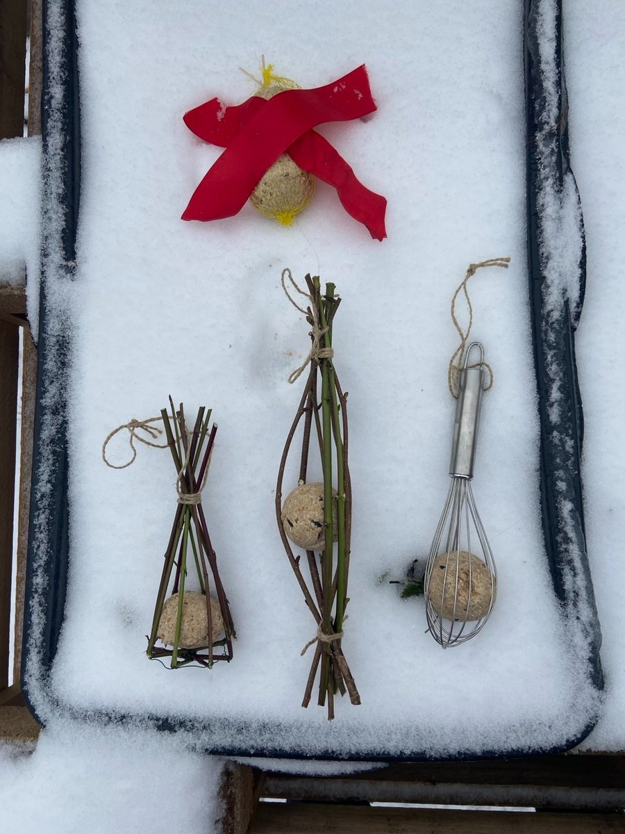 Um Kunststoffnetze in der Natur zu vermeiden können Meisenknödel in einem Käfig aus dünnen Ästen oder einem Schneebesen angeboten werden. Die Vögel bleiben so nicht hängen und die Netze werden zu Hause im gelben Sack entsorgt.