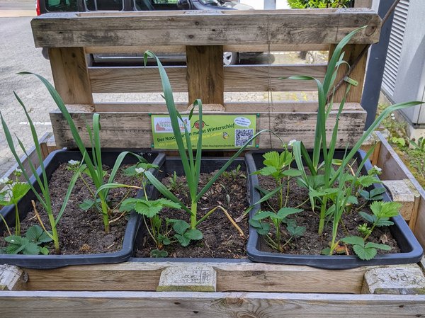 Erdbeeren, Radieschen und Pflücksalat wurden fleißig von Vorbeikommenden geerntet.