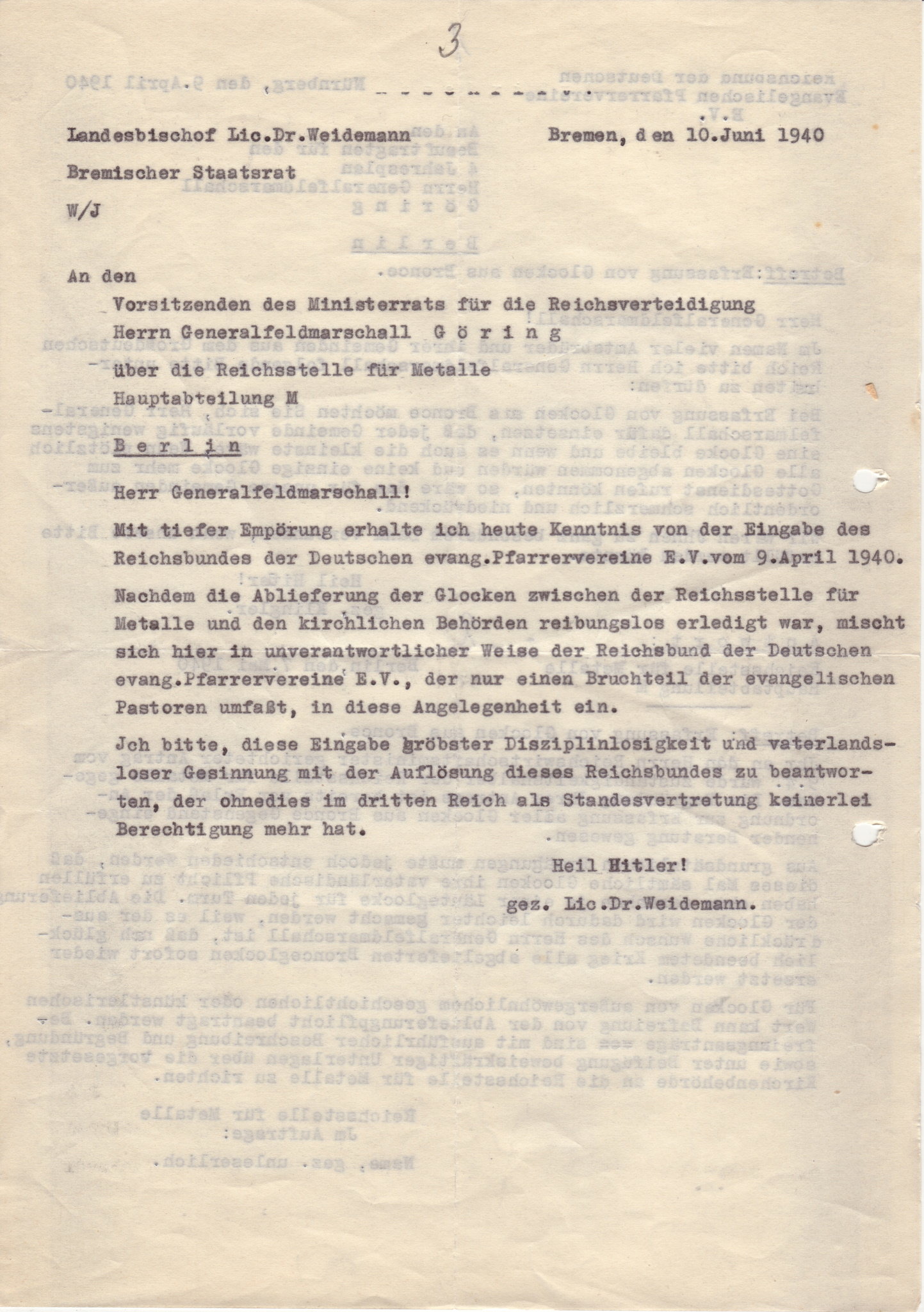 Landesbischof Dr. Weidemann, Bremischer Staatsrat an Hermann Göring: